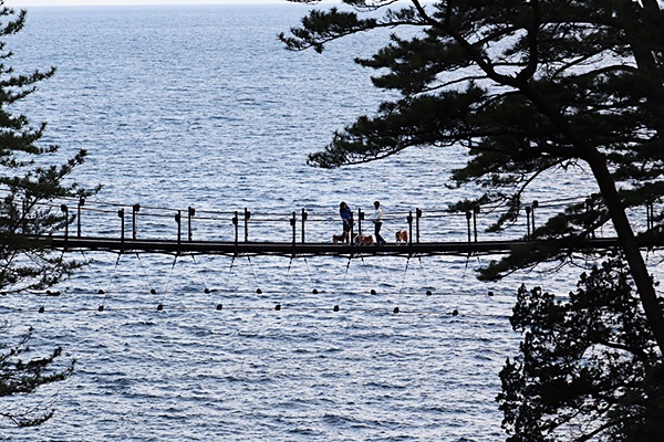 中でも、全長48m・高さ約23mの「門脇つり橋」はスリルと絶景を同時に楽しめる人気スポット。海の上に架かる橋からは、迫力ある景色を間近に感じることができます。